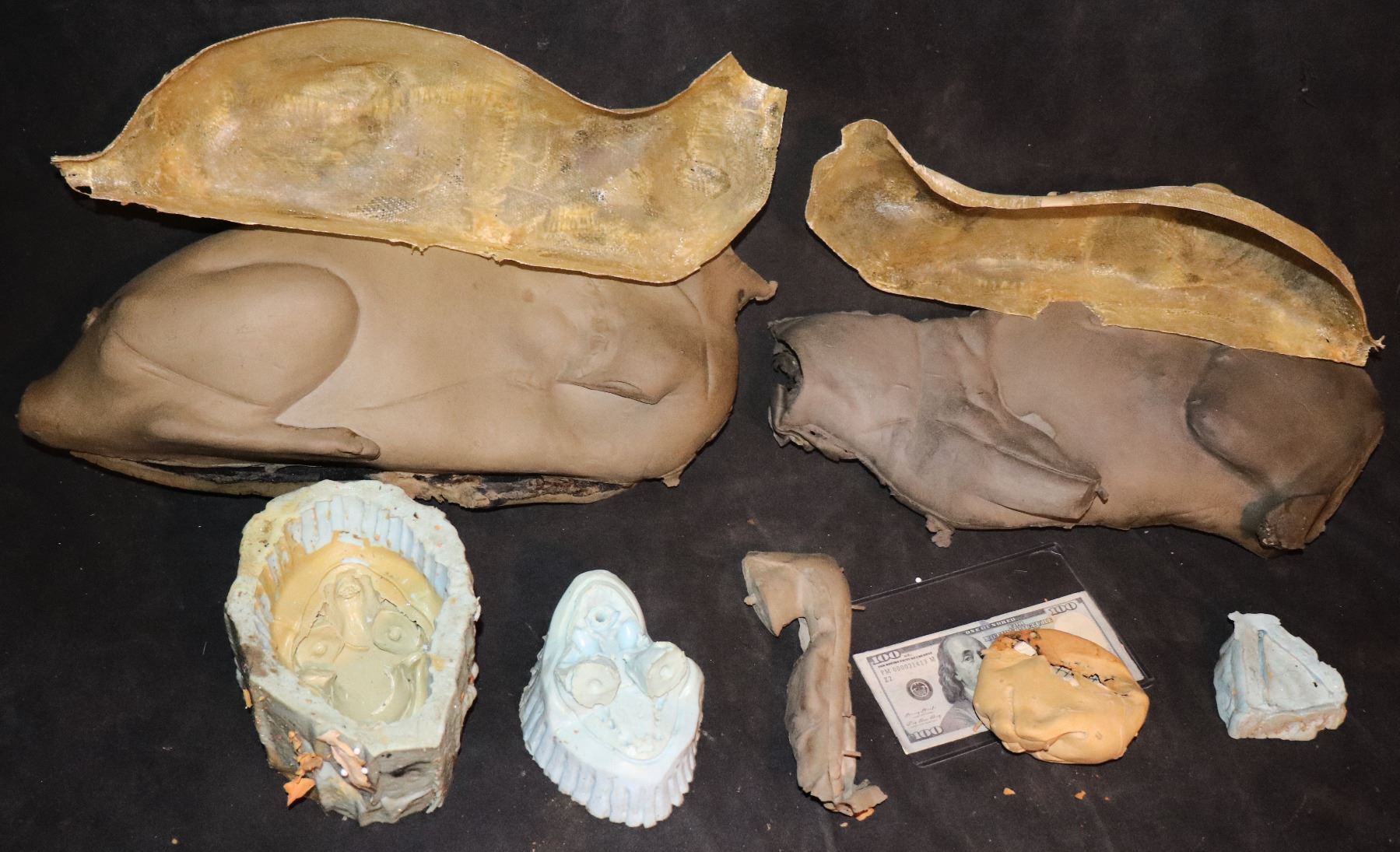 Lot contains 2 foam bodies, 2 inner body forms, a rough head, and a front leg. The molds are teeth, inside mouth, and ear!