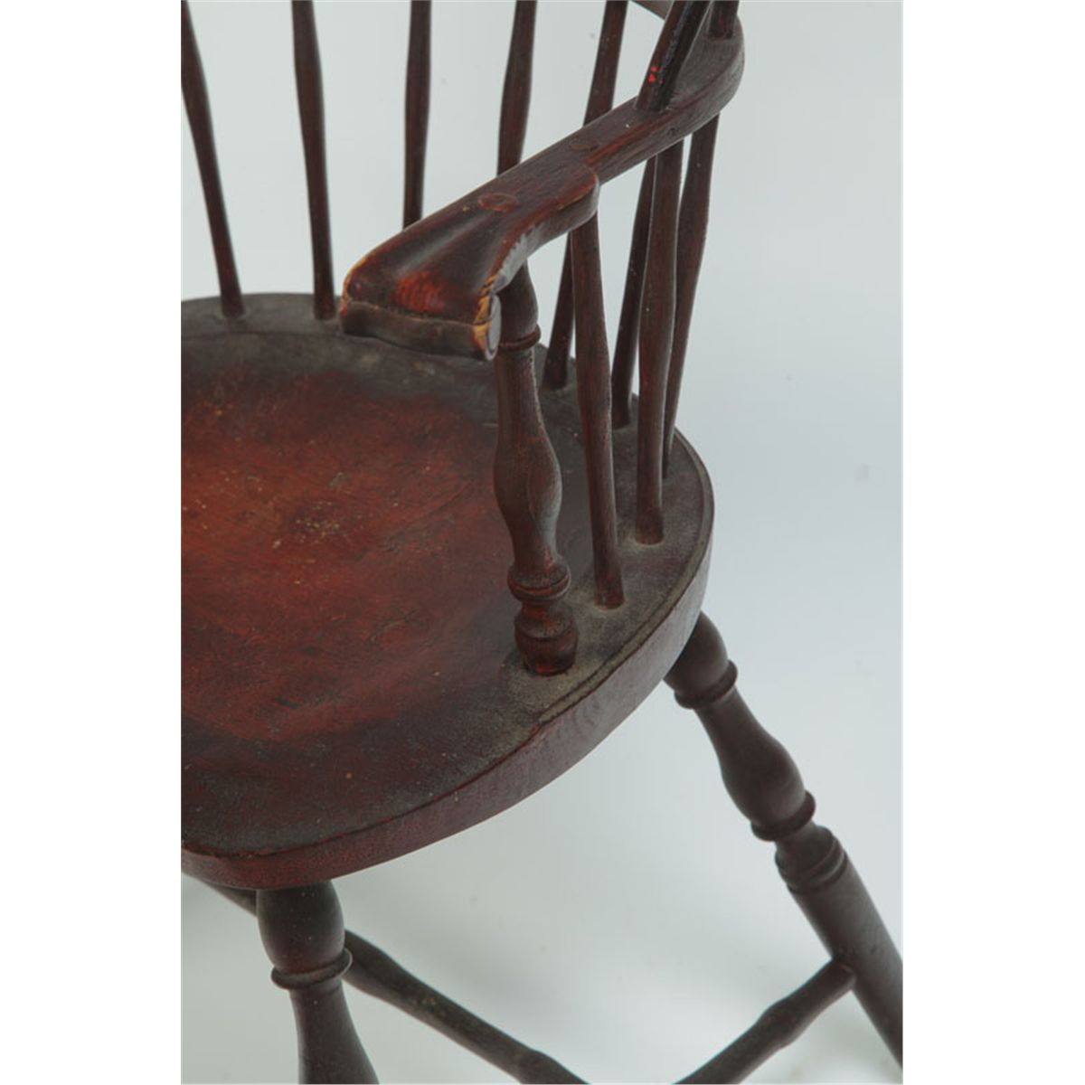 The turnings on this chair are very similar to turnings on Windsors made by Ebenezer Tracy of New London County. See Evans, American Windsor Chairs, fig. 6-99, as well as the collection of Helen and Steven Kellogg, Northeast Auctions, August 2011, lot 639.