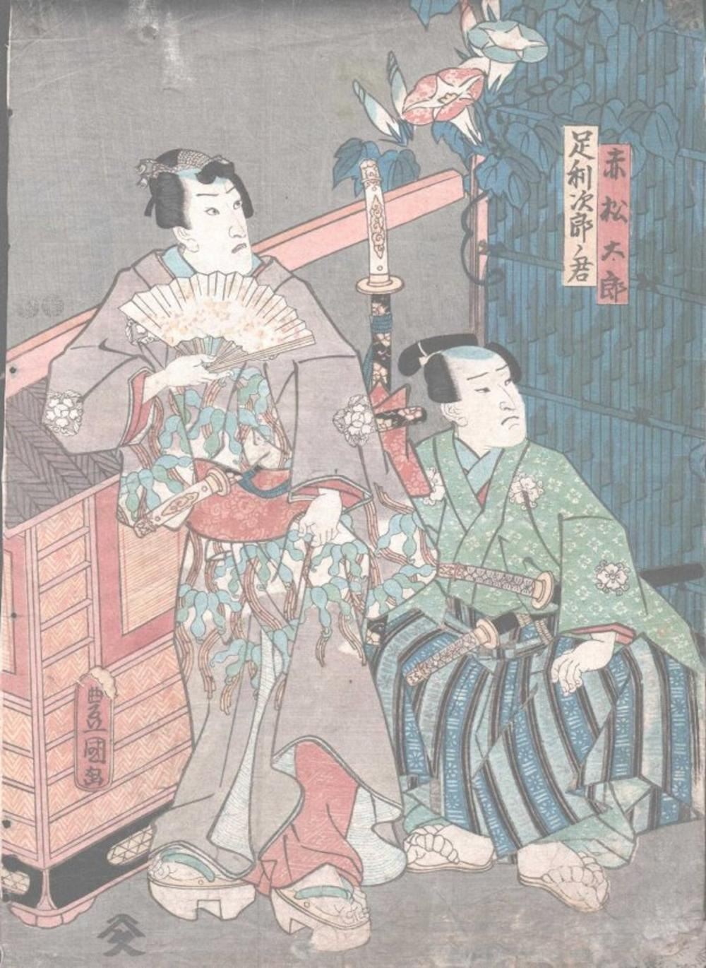 SADANO "TWO MEN"1/, MEASURES AT 13 3/4 X 9 3/4, SEE DESCRIPTIONS FOR CONDITION.