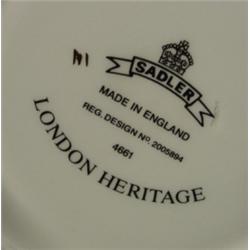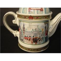 SADLER ENGLISH LONDON HERITAGE TEAPOT. Marked on bottom "Sadler-Made in England-London Heritage". Decorated with scenes of London around body. 6.5" H