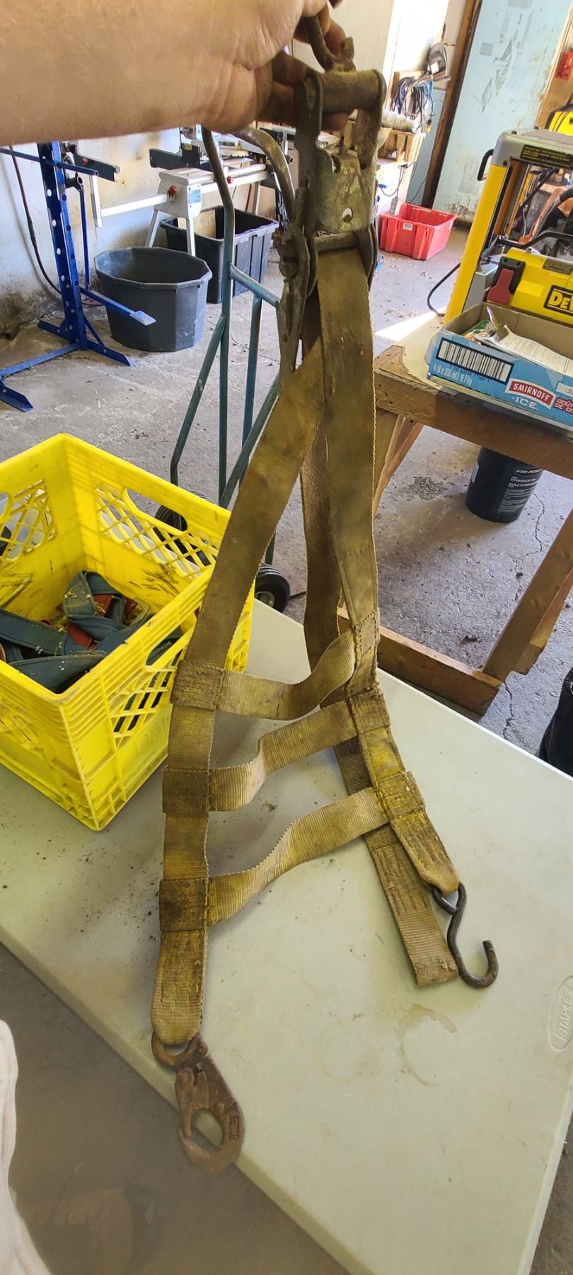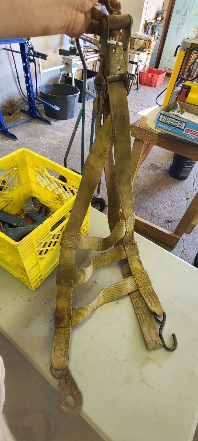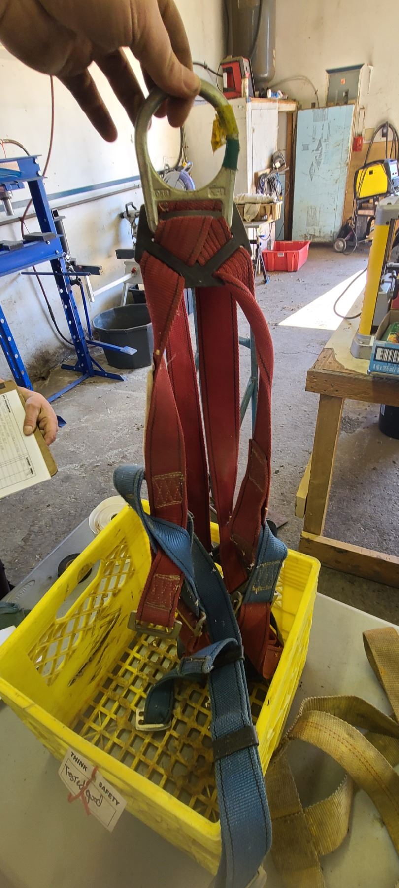 SAFETY HARNESS AND THREE POINT RATCHET STRAP