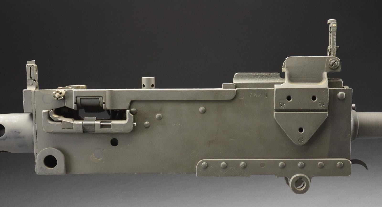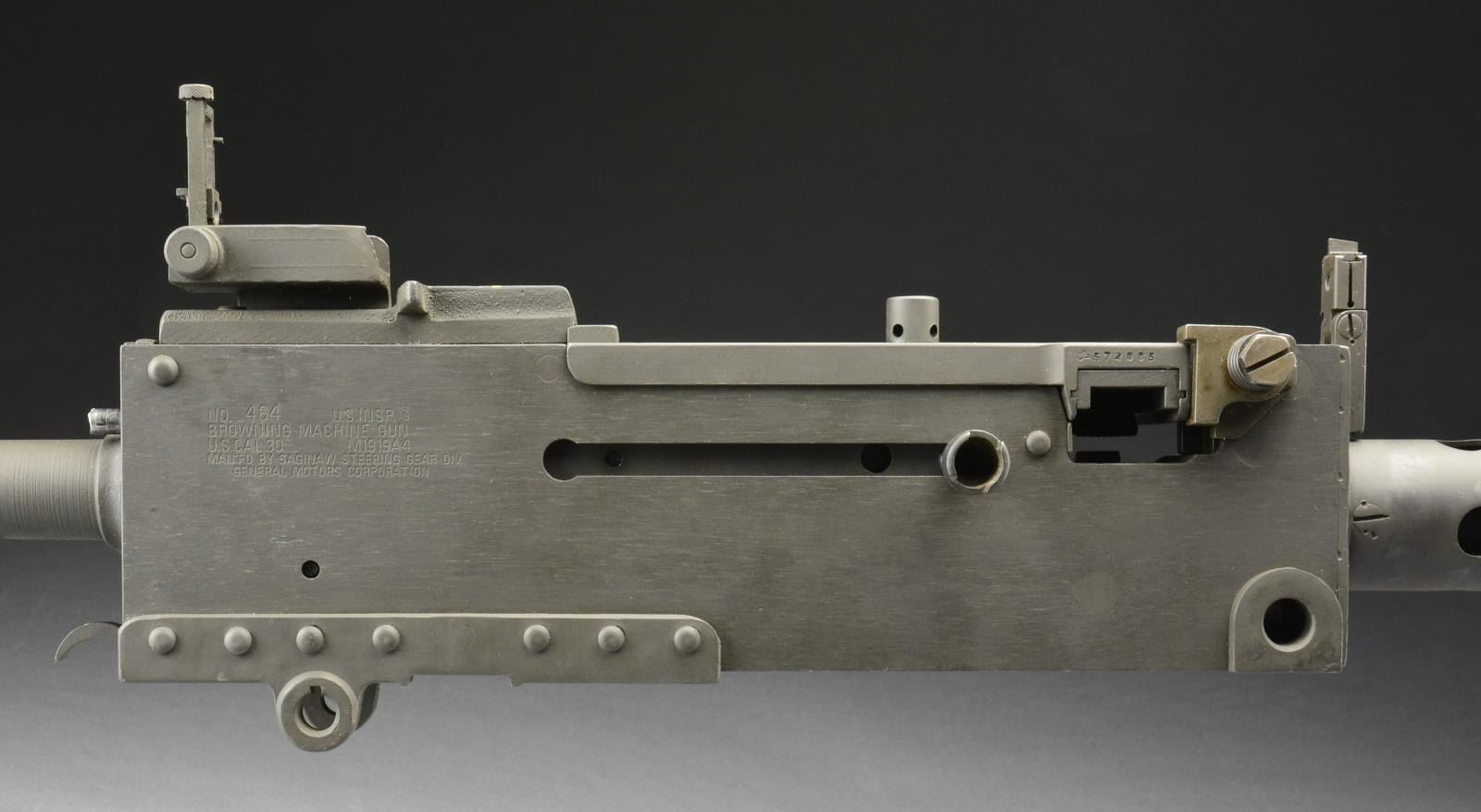 ALLIED ARMAMENT. Cal. 308. S#. 464. Bbl. 24". There aren't many firearms from the military past of the United States that are as recognizable as the rectangular receiver & perforated bbl. shroud of the Browning 1919. In order to own a legal machine gun there are fees & a fairly lengthy amount of paperwork that aren't necessary for traditional, Title I firearms like hunting & target rifles. This particular Browning was mfg. by Allied Armament & based on the war proven Saginaw gear division model by General Motors Corp. as a functional semi auto. This gives you the opportunity to own such an exciting piece of history w/ out the extra time & expense. This firearm transfers just like any other semi auto firearm. Though the right sideplate states the model as a 1919 A4, several of the conversion parts to create a 1919 A6 are included such as the bbl. carry handle & rear shoulder stock. Front sight is a folding post & rear sight is an elevation adj. ladder marked out to 1800 yards. It may be fired utilizing the included bipod or mounted to a tripod w/ the proper cradle assembly. It currently appears to be chambered in 7.62 NATO w/ the proper bolt & bbl. assembly, but also includes a few spare parts including a bbl. chambered in 8mm for other possible calibers. Common chamberings for this system include 7.62 NATO, 8 mm Mauser & U.S. 30-06. Parkerized finish on all exposed metal surfaces. Right sideplate markings include: "N.O. 464 U.S. INSP. G." / "BROWNING MACHINE GUN." / "U.S. CAL. 30. M1919 A4" / "MAN'FD BY SAGINAW STEERING GEAR DIV." / "GENERAL MOTORS CORPORATION". Interior right sideplate markings viewable through ejection port. "ALLIED ARMAMENT"/ "SCAPROOSE, OR" / "SEMI-AUTO". Original parts kit of unknown origin though several parts include Israeli markings which would be common for military .308 chambered military surplus parts. MAGS: 10 white cloth belts approx. 6 feet in length w/ brass grommets. UNATTACHED ACCESSORIES: basic field manual, A6 stock, A6 carry handle, armorer's wrench, broken shell extractor. A .308 Trunnion shield for link use, a head spacing gauge, spare booster & other unidentified small parts. An aftermarket wooden shipping/storage crate w/ U.S. ordinance mark lettered inside "DUNAY CHEST CO. 1942" & on the outside "BMG 1919A6 CAL-.30". CONDITION: everything appears functional & correct though unable to confirm through live fire exercises. Shiny bore w/ good rifling. Fire control mechanism appears to function correctly when cycled by hand. Spare 8 mm bbl. appears to have succumbed to a broken shell at some point. (21-744/JZ). MODERN. $2,000-$3,000.