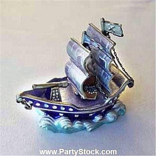 SAILBOAT! PIRATE SHIP! 24K GOLD CRYSTALS BOAT BOX<p>Height: 3 Inch