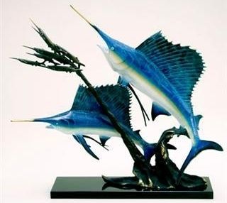 SAILFISH & BALLYHOO BRONZE SCULPTURE - 17.5"H 20.5"W 10 "D - GREAT ATTENTION TO DETAIL - BEAUTIFUL FINISH - LOST WAX CAST- MOUNTED ON MARBLE BASE