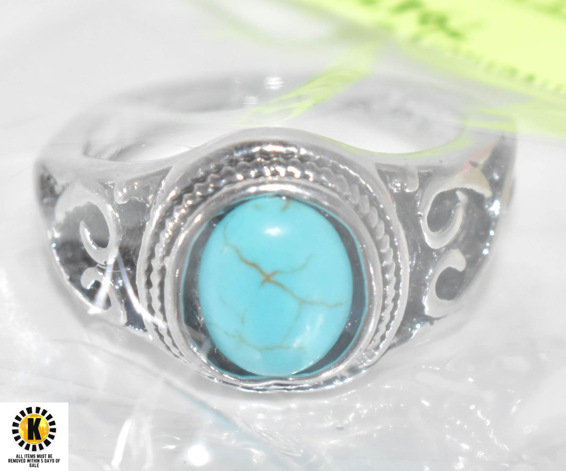 SAILIMUE STAINLESS STEEL TURQUOISE RING SIZE 9