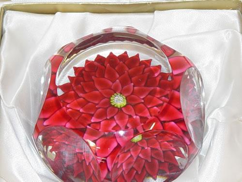 SAINT LOUIS PAPERWEIGHT W/ ORIGINAL BOX-DAHLIA CERTIFICATE #220 BY PAUL JOKELSON - SIGNED S.L. 1970 IN CENTER CANE