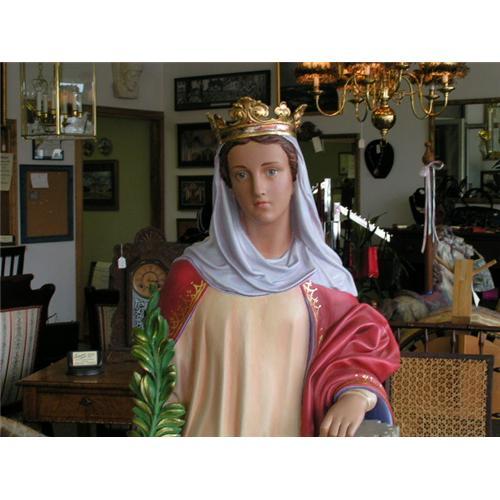 THIS IS AN ALMOST LIFE-SIZED STATUE OF STE. BARBARA, PATRON SAINT OF ARCHITECTS AND BUILDERS. SHE IS IN EXCELLENT RESTORED CONDITION, AND EAGER TO FIND A NEW HOME.