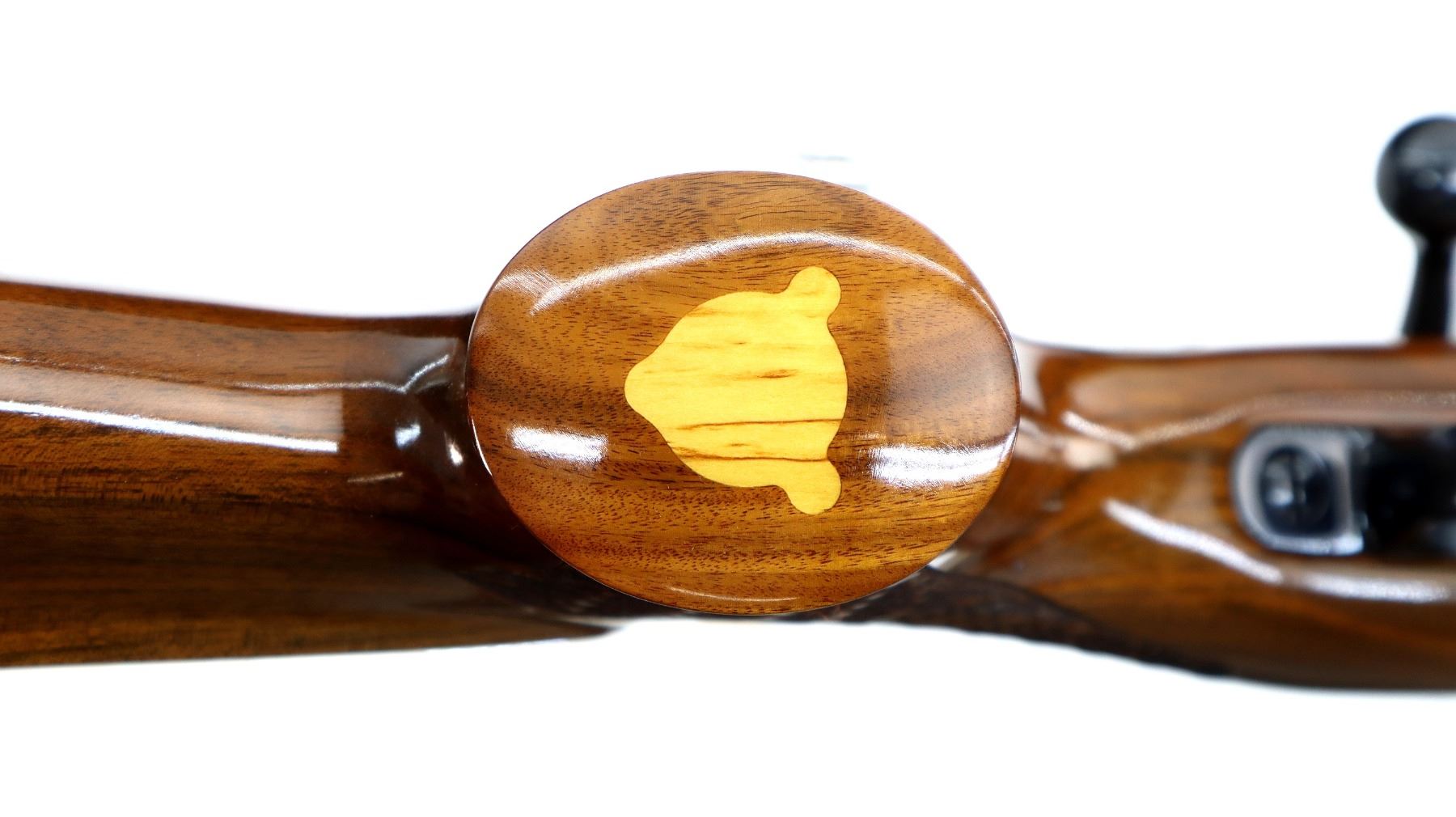 Main Description: No sights, polish blued finish, tapered round barrel, receiver has integral scope bases, smooth bolt knob. One piece gloss finish wood stock, Rosewood forend and pistol grip caps, checkered forearm and pistol grip with right hand palm swell, cheek rest, red rubber recoil pad, engraved, steel hinged floor plate and trigger guard, swivel studs.