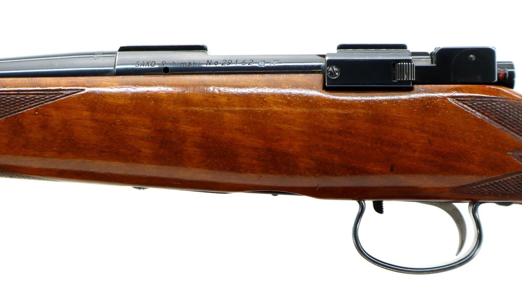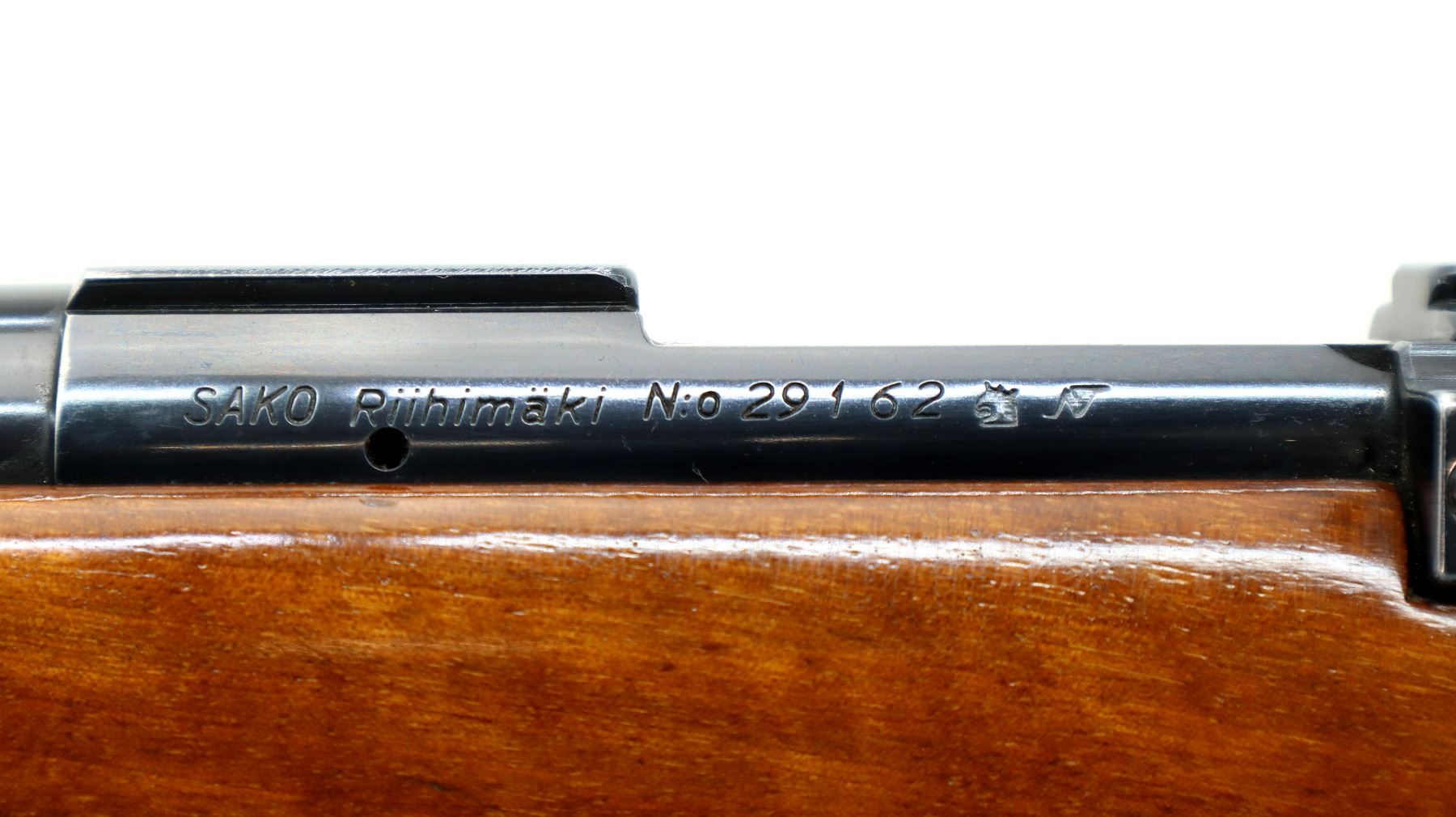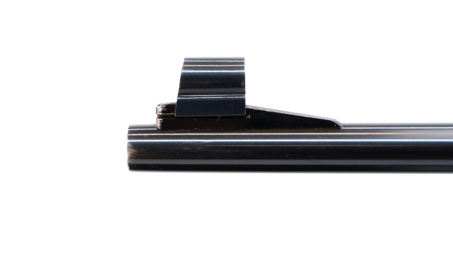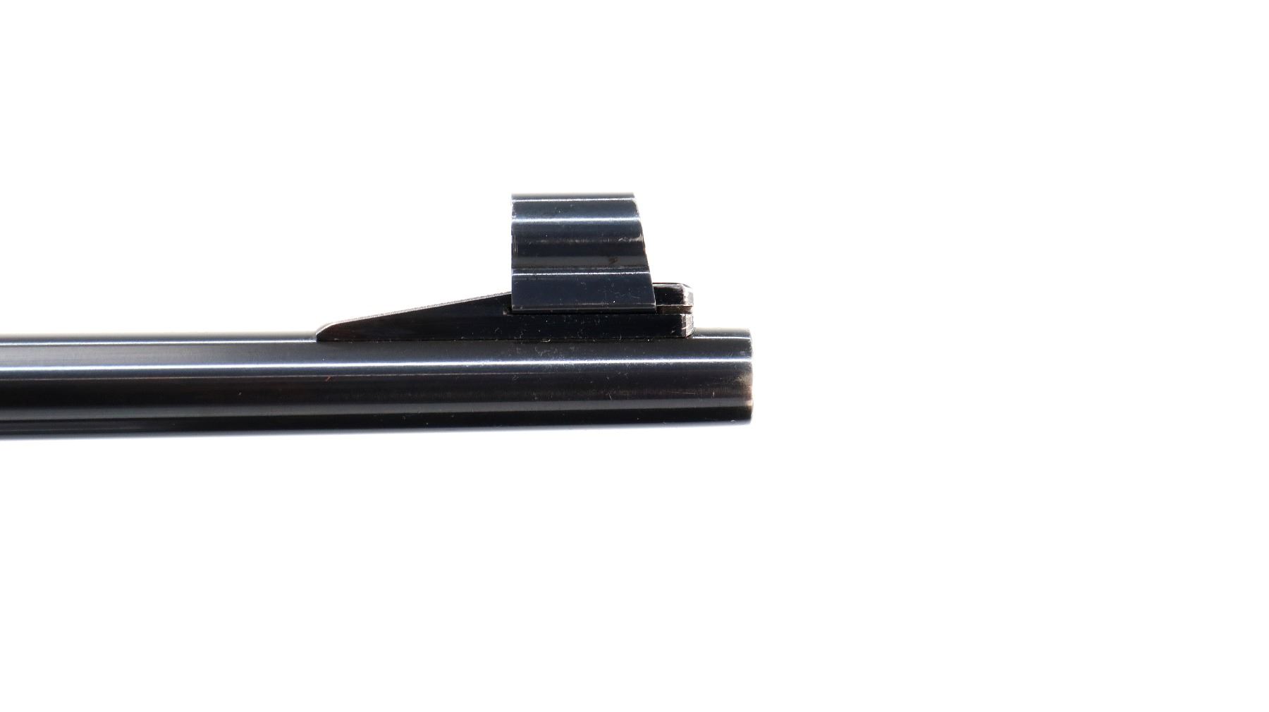 Main Description: Manufactured 1955. Blade front sight with hood and ramp, adjustable u notched rear sight, polish blued finish, receiver has integral scope bases, checkered bolt knob. One piece gloss finish wood stock, checkered forearm and pistol grip, European cheek rest, grooved black polymer butt plate, grip cap, sling swivels.