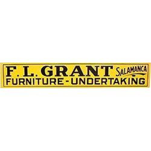 GRANT FURNITURE?UNDERTAKING TIN SIGN c1910, 5? x 28?, yellow & black embossed, exc. cond., must remove original tissue