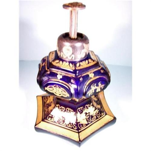 a very heavy (2 lbs. 4.5oz.) cobalt leaded glass and gilt with