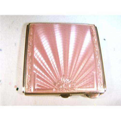 and pink enamel/guilloche Art Deco square compact that looks