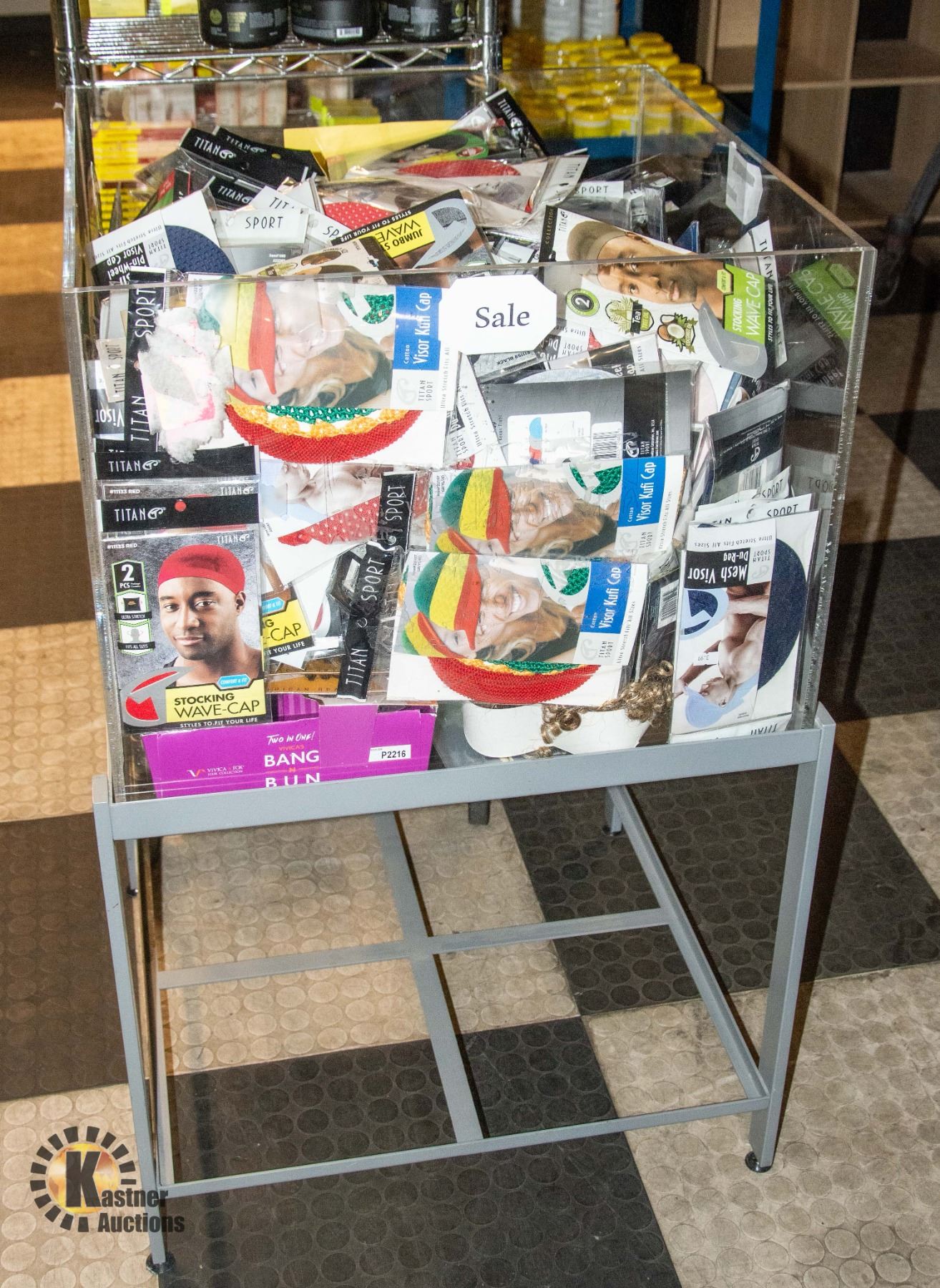 SALE BIN WITH DREADLOCK, WAVE, PINWHEEL VISOR CAPS