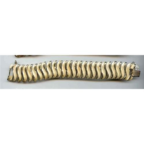 Curves and clings to you wrist. Feels like a feather. Old Coro with the winged horse stamp. 7 1/4" by 1".