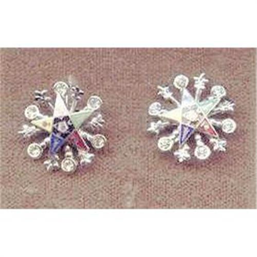 Cute 3/4 round Eastern Star Earrings. Rhinestones on the points. In color. Silver tone. Screw backs Fabulous.