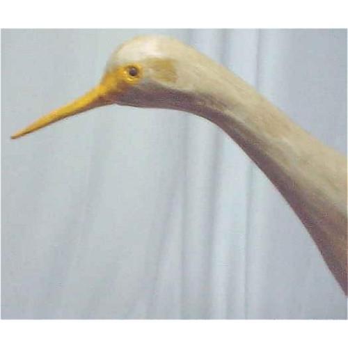 The cutest Egret. He has personality. He is signed Leo . I bought him in Chinoetique,Va. from the carver. He is 15 " long and 11 3/4" high. I believe the carver died I am not sure.