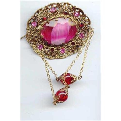 The colors in this are beautiful. Glass Stones With red Rhinestones. wow/ Over 2 " wide and under 2" high. With the beads on the bottom, the whole dimension is 4"long