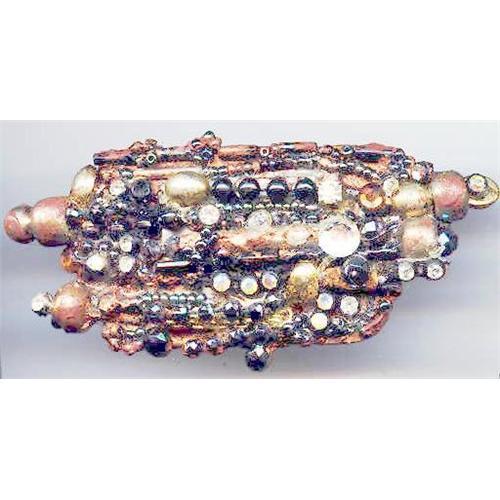 3 1/2 by 2" large enough to show off on your jacket . Magnificent warm colors for the winter or summer. Lots of glitter. Looks great on a white linen jacket...