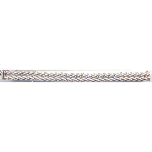 Made in Italy 925 sterling silver is interlinked together for great comfort to the wearer. Soft and Smooth is the workmanship  .Has a safety clasp. It is1/2" wide and  71/2 " long.      Magnificent.