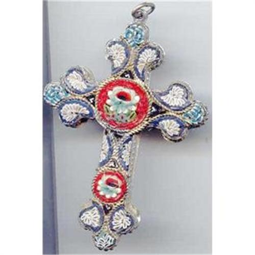 This Cross is 3" long and 2" WIDE.ENTICING. Vibrant Colors with such a elegant design. This is Breath taking.Can be worn with a cord or sterling chain. RARE . Wow