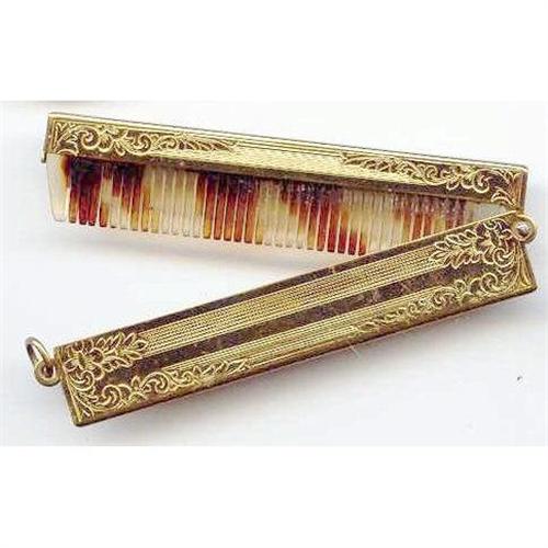 This hangs on a chain and is used as a comb. Case Opens up to show a comb. 12kt Gold filled