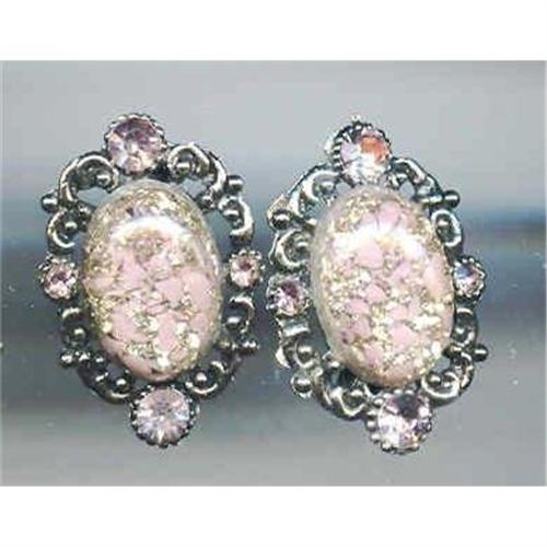 Big and Bold Confetti Earring in Pink. Pink Rhinestones circle the center. About 1 1/2 by 1". They are clip ons so they are easy to wear. Wow