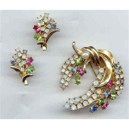 <tr><td>Title:SALE Rhinestone Pin with earrings Signed  ART</td></tr>