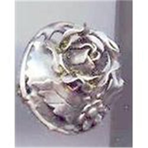 This should be signed. 1" round. Detailed with the rose as the focal point. unusual setting and handmade. One of a kind. Exceptional workmanship.