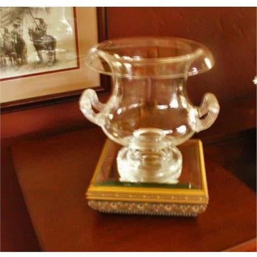 Lovely vintage hand blown signed Steuben clear glass ribbed handled urn dampierre style. Circa 1960's in excellent condition with normal wear or scratching on the bottom of footed pedestal and rolled mouth edge. Gorgeous and heavy.<p>Measurement: Appx. 7-1/8" Tall, with a 4" base. The Diameter is 7".