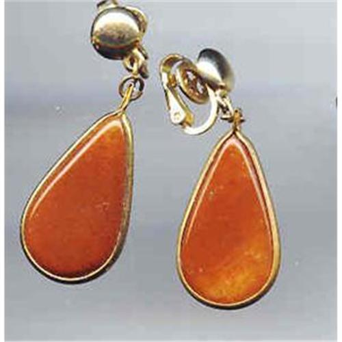 Long and dangles About 1 3/4" long . Clip ons so it is easy to wear.Brown stone like earring with gold tone base..About the 50's. Elegant