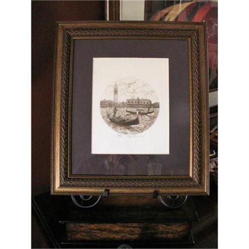 Penciled Signed LIMITED EDITION, COPPER PLATE ETCHING, BY UGO BARACCO. #12/99<p>Highly collectible Artist, UGO BARACCO, Born 1949 Venice. Ugo Baracco may often be found at his stall along the Grand Canal in Venice near the Danieli Hotel, where he sits quietly while an associate negotiates sales of his etchings in summer. His work can be found in many galleries and private collections around the world and has exhibited internationally for over 20 years. Exhibited in Tokyo, Paris, California and New York. <p>Baracco's work beautifully reflects the illusive magic of Venice and the artistry of the old masters. Baracco's background as an artist began at the Venice Academy of Fine Arts where he attended the painting and drawing classes. He specializes in copper plate engraving, etchings and aquatints.<p>Framed: 15-1/2" x 17" Unframed: 9" x 12" appx<p>UGO'S TECHNIQUE:<p>Ugo Baracco uses an original antiquing process to make his limited edition etchings and aqua tints. This process, entirely executed by hand, involves covering a zinc or copper plate with a wax-based substance. The design is etched into the wax with a sharp pointed tool exposing the metal. The plate is then put into an acid bath which corrodes the exposed areas. The degree of intensity is achieved by the amount of time the plate is expose to the acid. The final etching is printed on handmade paper. The artist then colors each plate individually which guarantees that no two prints are exactly the same. Each edition ...