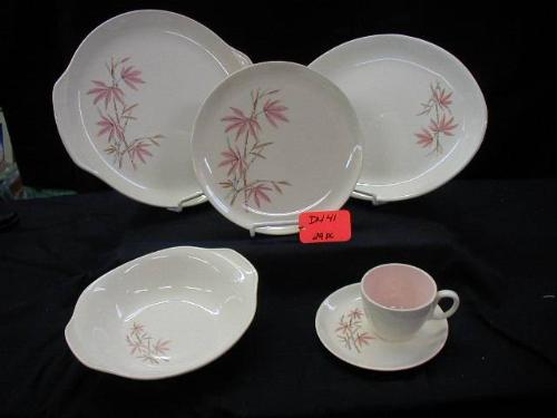 SALEM PINK BAMBOO SET INCLUDES (12) 9 1/4in DINNER PLATES, (8) CUPS, (5) 6 1/8in PLATES, (2) 9 1/8in SERVING BOWLS, (1) 13in OVAL PLATTER, (1) 13 3/8in TAB HND. PLATTER, 29PCS