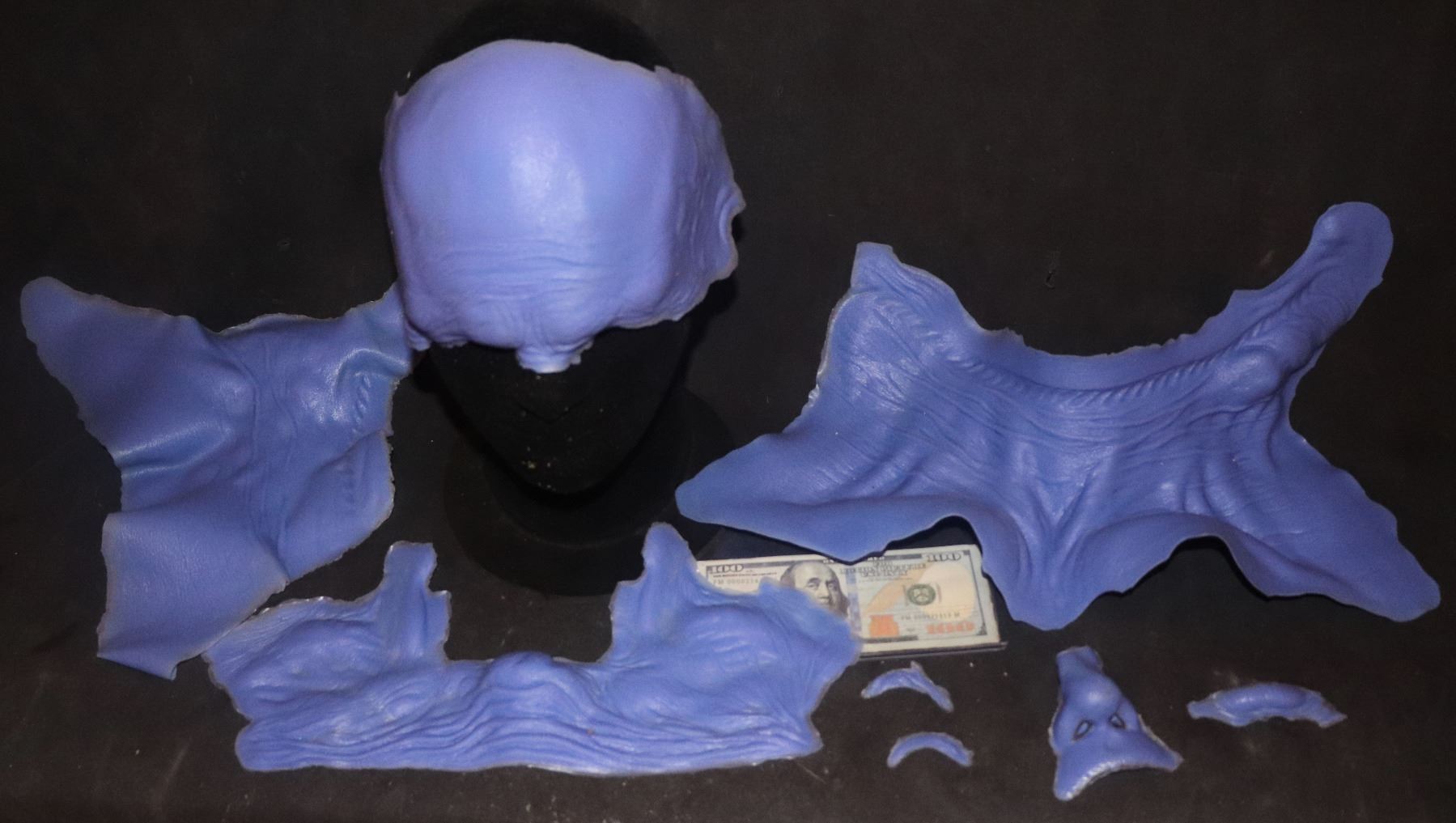 These are him hanging and purple to see detail, raw silicone, and cast thicker.