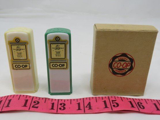 SALT AND PEPPER SHAKERS (VINTAGE) *CO-OP* (PLASTIC) *WITH ORIGINAL BOX*
