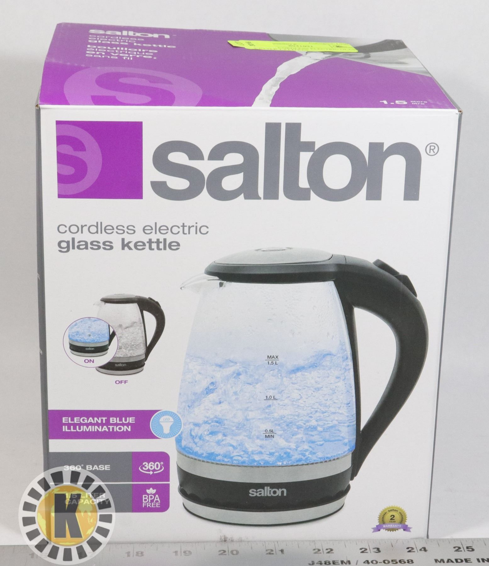 SALTON CORDLESS ELECTRIC GLASS KETTLE 1.5 LITRES