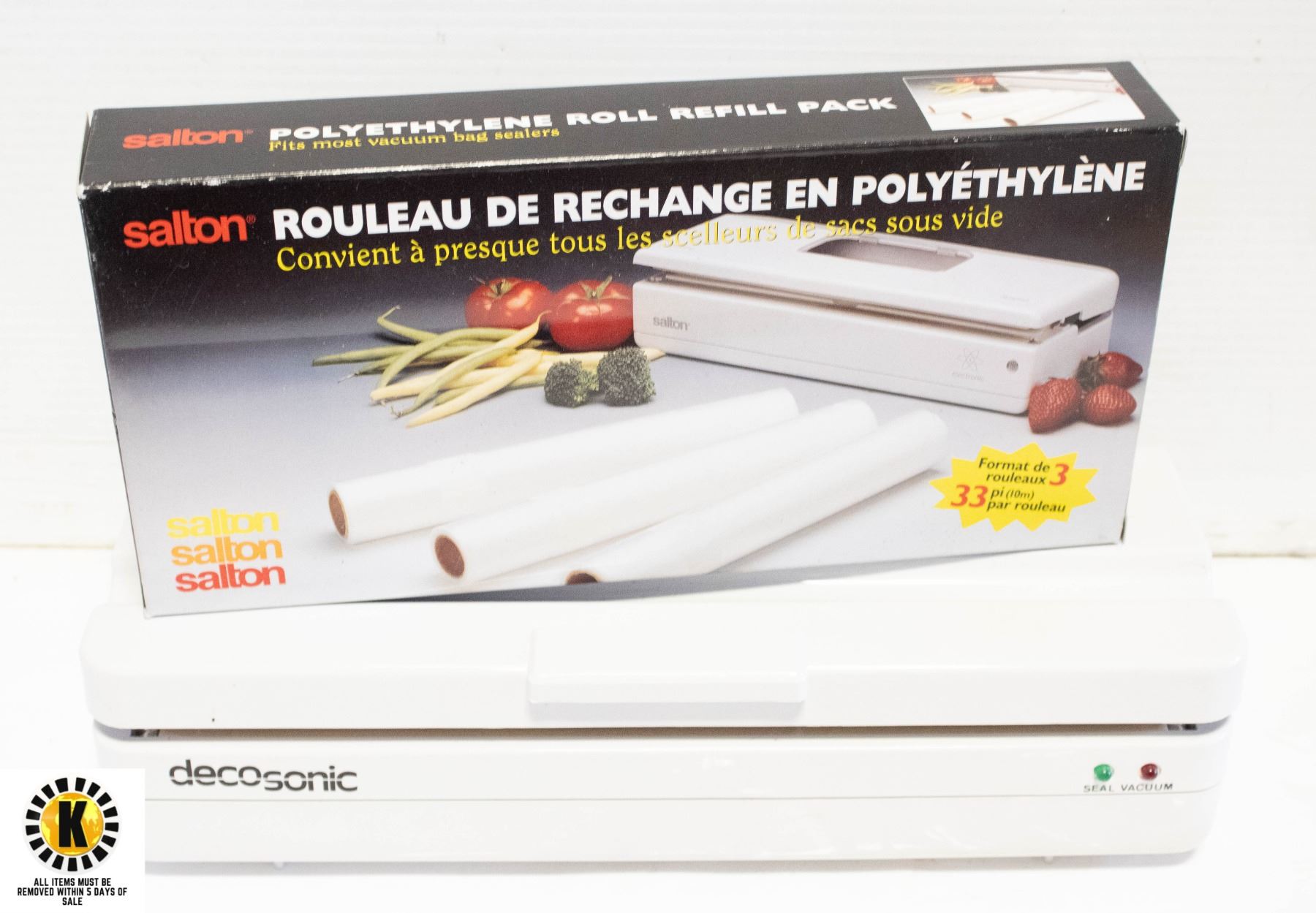 SALTON DECOSONIC VACUUM BAG SEALER W/REFILL