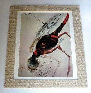 SALVADOR DALI BIBLE LITHOGRAPH - "BIBLE INSECT"- AFTER THE PAINTING FROM DALI'S BIBLIA SACRA - THIS IS ONE OF THE ONLY AUTHORIZED REPRODUCTIONS PRINTED IN 1997 IN GERMANY (German Die Buchsensation des Jahres Die Dali Bibel) - BEAUTIFULLY FRAMED AND MATTED - IMAGE APPX 8.25" X 11" - FRAMED APPX 13" X 16" --