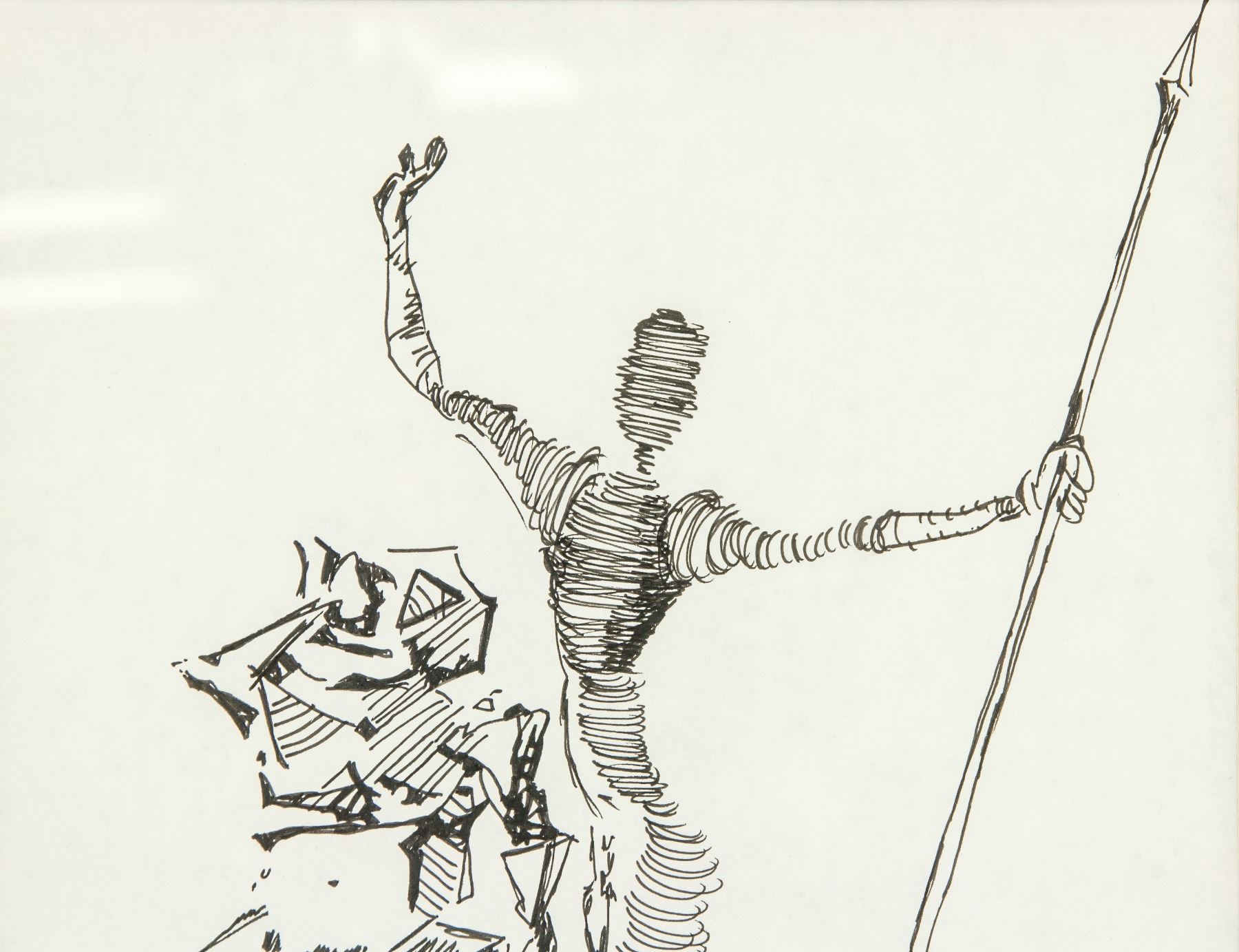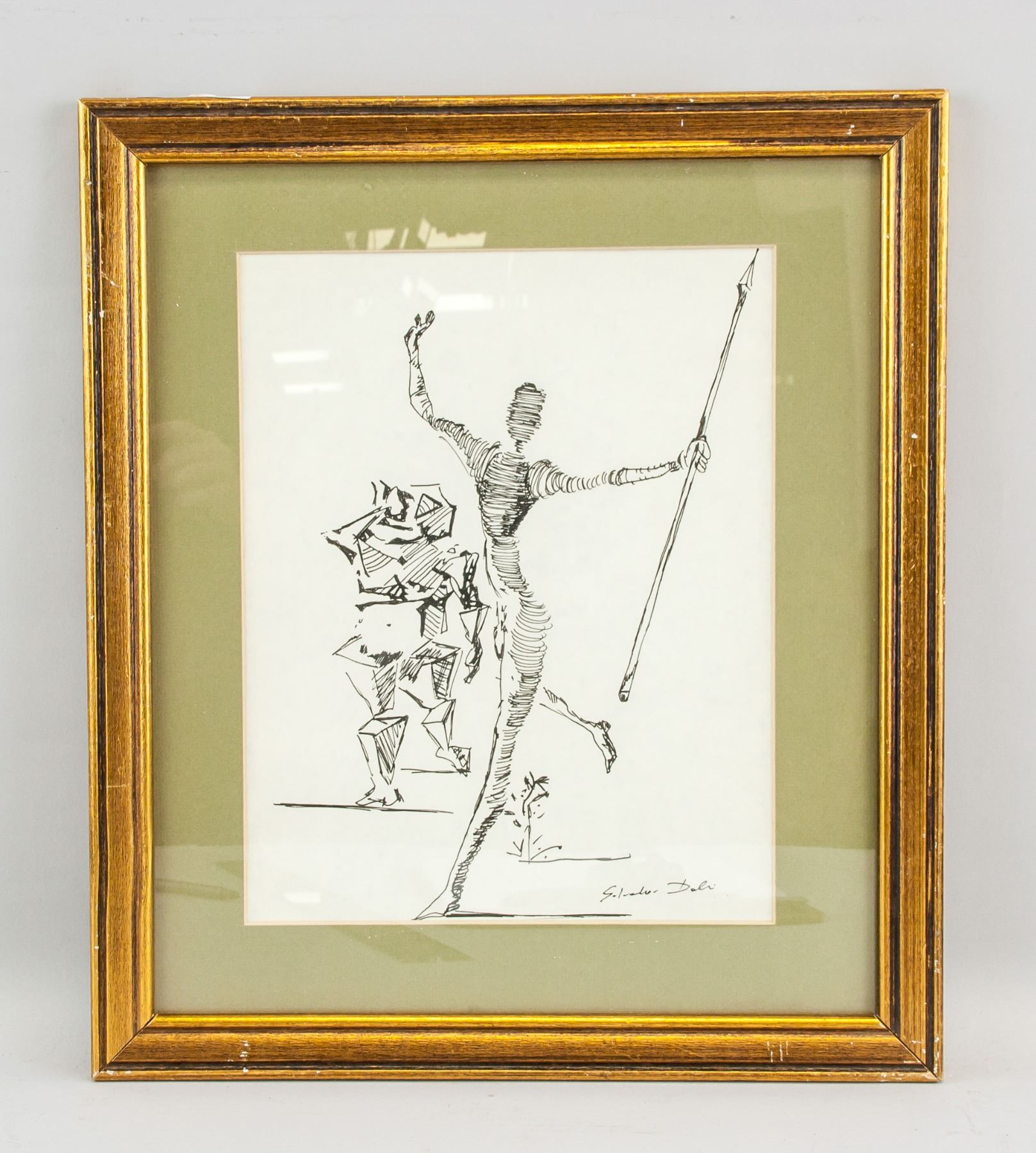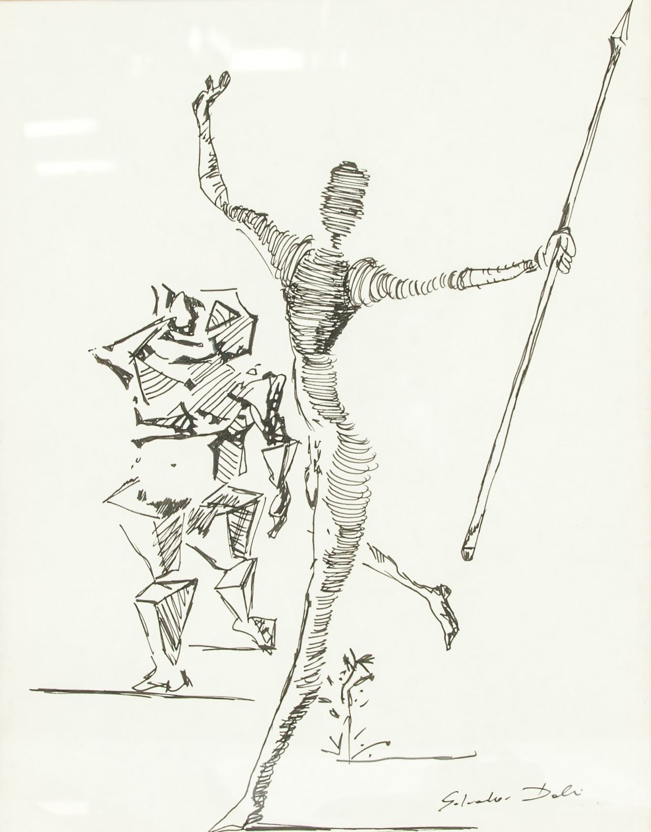 Ink on paper, study of Don Quixote. Signed and attr. Salvador Dali (Spanish, 1904-1989) on lower right corner. 10.5 x 8 in. (26.7 x 20.3 cm). Salvador Dali was a leading proponent of Surrealism, the 20-century avant-garde movement that sought to release the creative potential of the unconscious through strange, dream-like imagery. "Surrealism is destructive, but it destroys only what it considers to be shackles limiting our vision," he said. Dali is specially credited with the innovation of "paranoia-criticism," a philosophy of art making he defined as “irrational understanding based on the interpretive-critical association of delirious phenomena." In addition to meticulously painting fantastic compositions, such as The Accommodations of Desire (1929) and the melting clocks in his famed The Persistence of Memory (1931), Dalí was a prolific writer and early filmmaker, and cultivated an eccentric public persona with his flamboyant mustache, pet ocelot, and outlandish behavior and quips. "Each morning when I awake, I experience again a supreme pleasure,” he once said. "That of being Salvador Dalí." PROVENANCE: Southern Ontario Estate