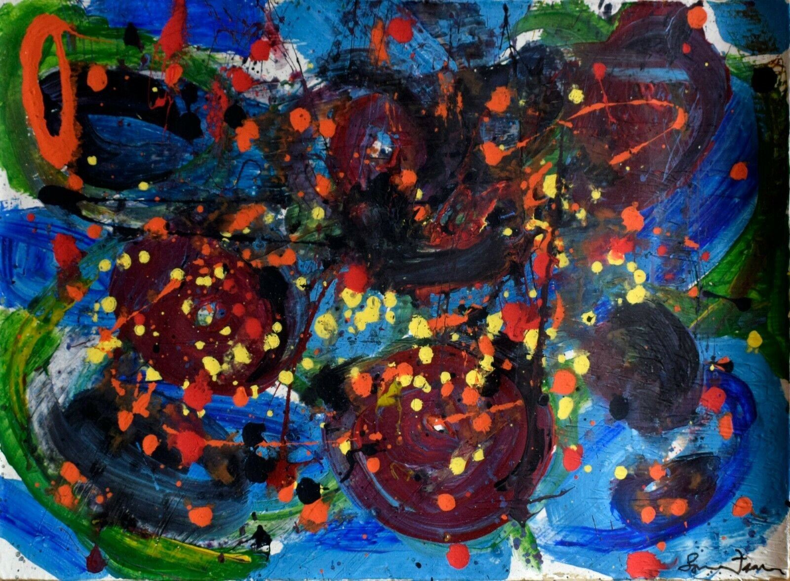 Sam Francis painting on canvas, signed. Approx 22x14 inches. Mounted and framed. Supplied with coa.