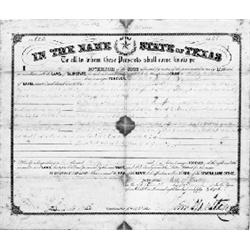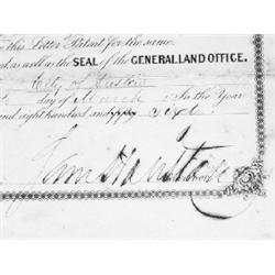 <b>140. SAM HOUSTON</b> (1793 - 1863) American soldier and politician, defeated Santa Anna at San Jacinto and became first president of the Republic of Texas. Scarce partly-printed D.S. "<i>Sam Houston</i>" as Governor of Texas, 1p. folio, Austin, Mar. 15, 1860, a grant of 160 acres of land in Rusk Co. to one Philip Russell, "<i>By virtue of and Act to authorize the location Sale and Settlement of the Mississippi and Pacific Rail Road Reserve...</i>". Russell apparently had been granted the land following the appropriation of his own land for use by the railroad. Moderate foxing, with three larger spots at top, middle and bottom of central vertical fold, boldly signed, set in a gilt wood frame.<b> $1,500-2,000</b>