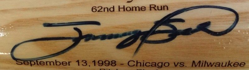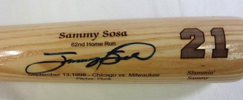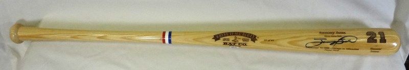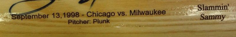 CHICAGO CUBS. WHERE IT ALL BEGAN LIMITED EDITION SPECIAL SERIES BAT CO MADE IN USA. SAMMY SOSA 62nd HOME RUN. September 13, 1998 - Chicago vs. Milwaukee. 21 Slammin' Sammy. EST 500.00-600.00
