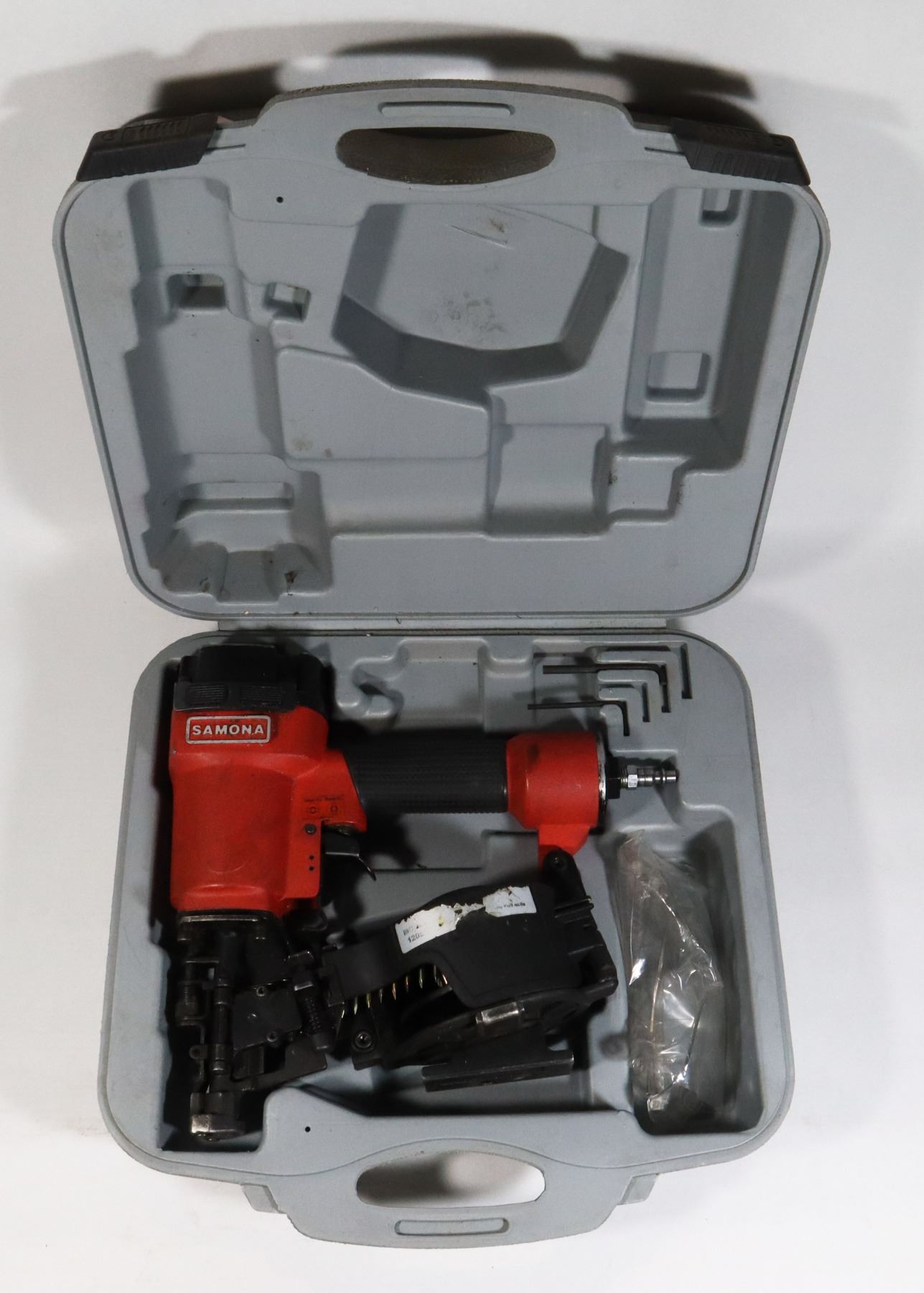 INCLUDES SAFETY GLASSES AND THERE ARE SOME NAILS IN NAILER