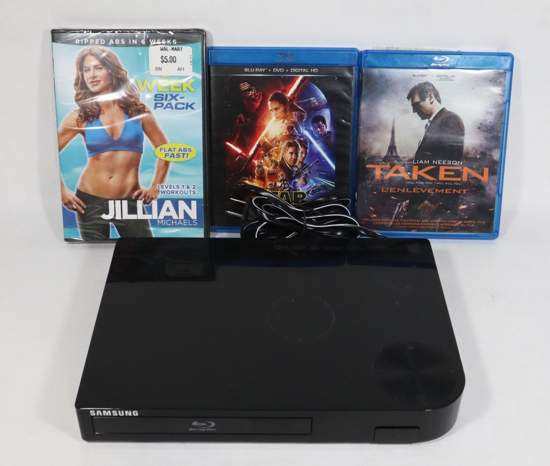 SAMSUNG DVD PLAYER WITH DVD/BLUE RAY MOVIES