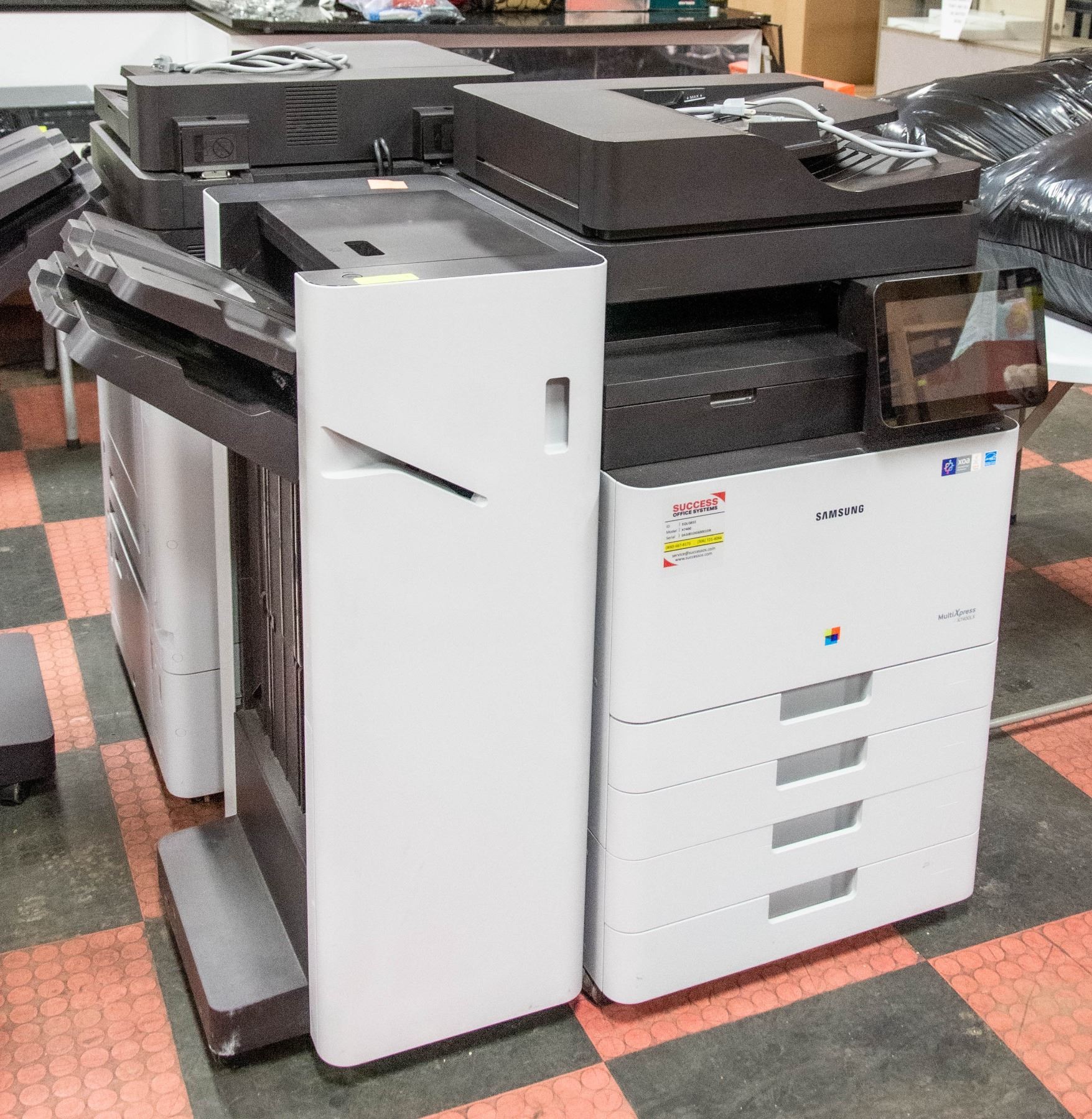 40 PAGES PER MINUTE WITH FAX, STAPLING AND HOLE PUNCHING. VERIFIED METER - BLACK @ 71,803, COLOR @ 108,139. PAGES PRINTED- MSRP NEW $29,825.00, COPY/PRINT/SCAN INCLUDED, 10.1" COLOR TABLET STYLE TOUCHSCREEN, UP TO A3 (11" X 17" PAPER) 4X520 SHEET PAPER TRAYS, 100 SHEET BYPASS, AUTOMATIC DUPLEX MODULE FOR 2-SIDED COPY/PRINT. 100 SHEET AUTOMATIC DOCUMENT FEEDER, 6GB RAM, 320GB HDD WITH 1.5GHZ QUAD CORE PROCESSOR, 100 DAY WARRANTY WITH ONGOING SERVICE MAINTENANCE AVAILABLE THROUGH SUCCESS OFFICE SYSTEMS. **ALL ITEMS MUST BE REMOVED BY 5PM SATURDAY, JANUARY 28TH 2023. **ALL REMAINING ITEMS WILL BE SUBJECT TO A $6.00 PER DAY STORAGE CHARGE. ANY ITEMS REMAINING AFTER MONDAY, FEBRUARY 13TH, 2023 WILL BE CONSIDERED FORFEITED. NO REFUNDS WILL BE ISSUED FOR FORFEITED ITEMS. TO SCHEDULE A PICK UP APPOINTMENT CLICK HERE