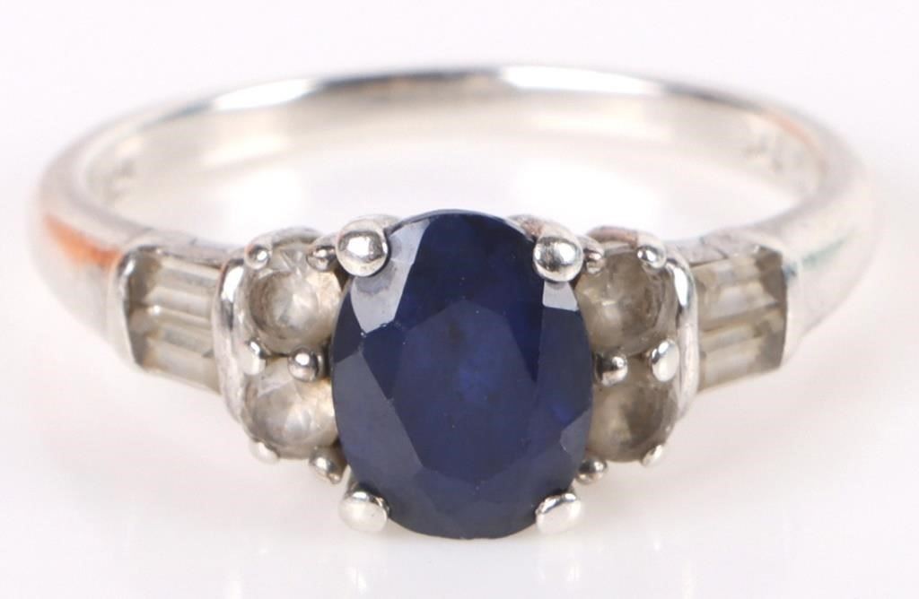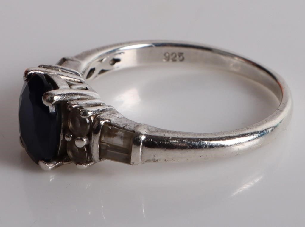 Samuel Aaron sterling silver lab created sapphire ladies ring.
