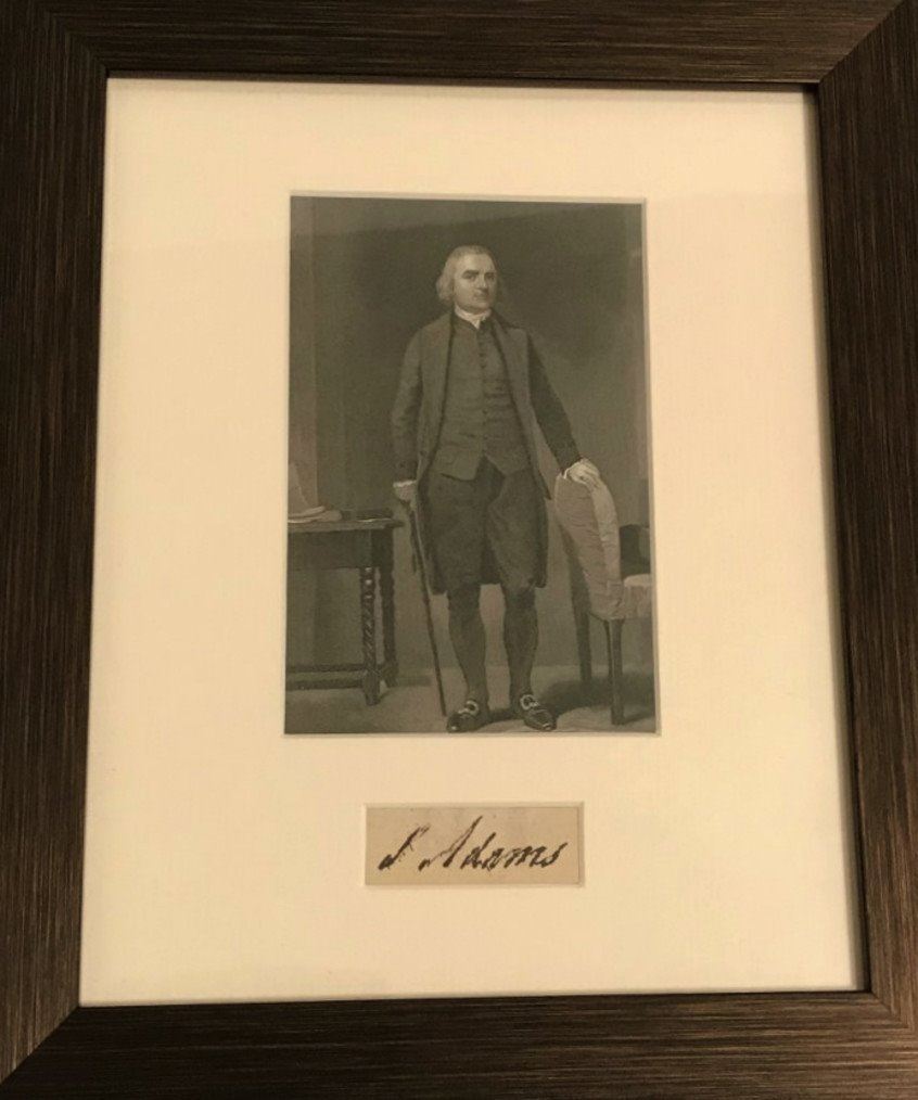 SAMUEL ADAMS was an American statesman, political philosopher, and one of the Founding Fathers of the United States. He was a politician in colonial Massachusetts, a leader of the movement that became the American Revolution, and one of the architects of the principles of American republicanism that shaped the political culture of the United States. He was a second cousin to fellow Founding Father, President John Adams. An autograph by Samuel Adams professionally mounted and framed. Supplied with coa.