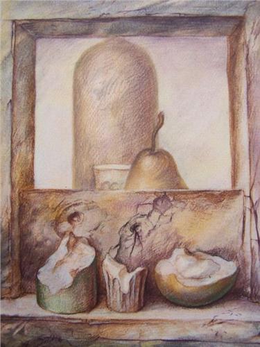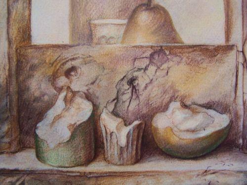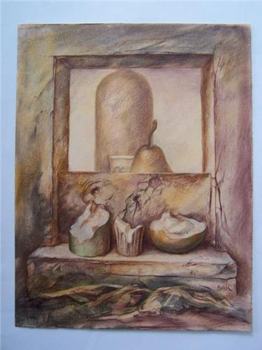 Additional Information : The vanitas drawing, a very popular subject of the artist, is Hand Signed in color pencil by the artist Bak in the lower right corner.
