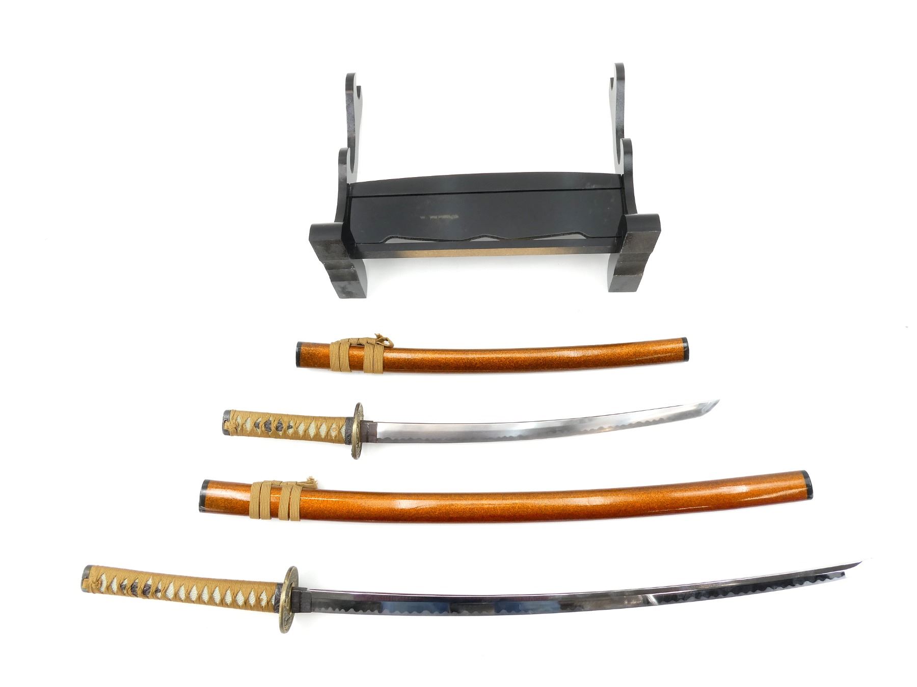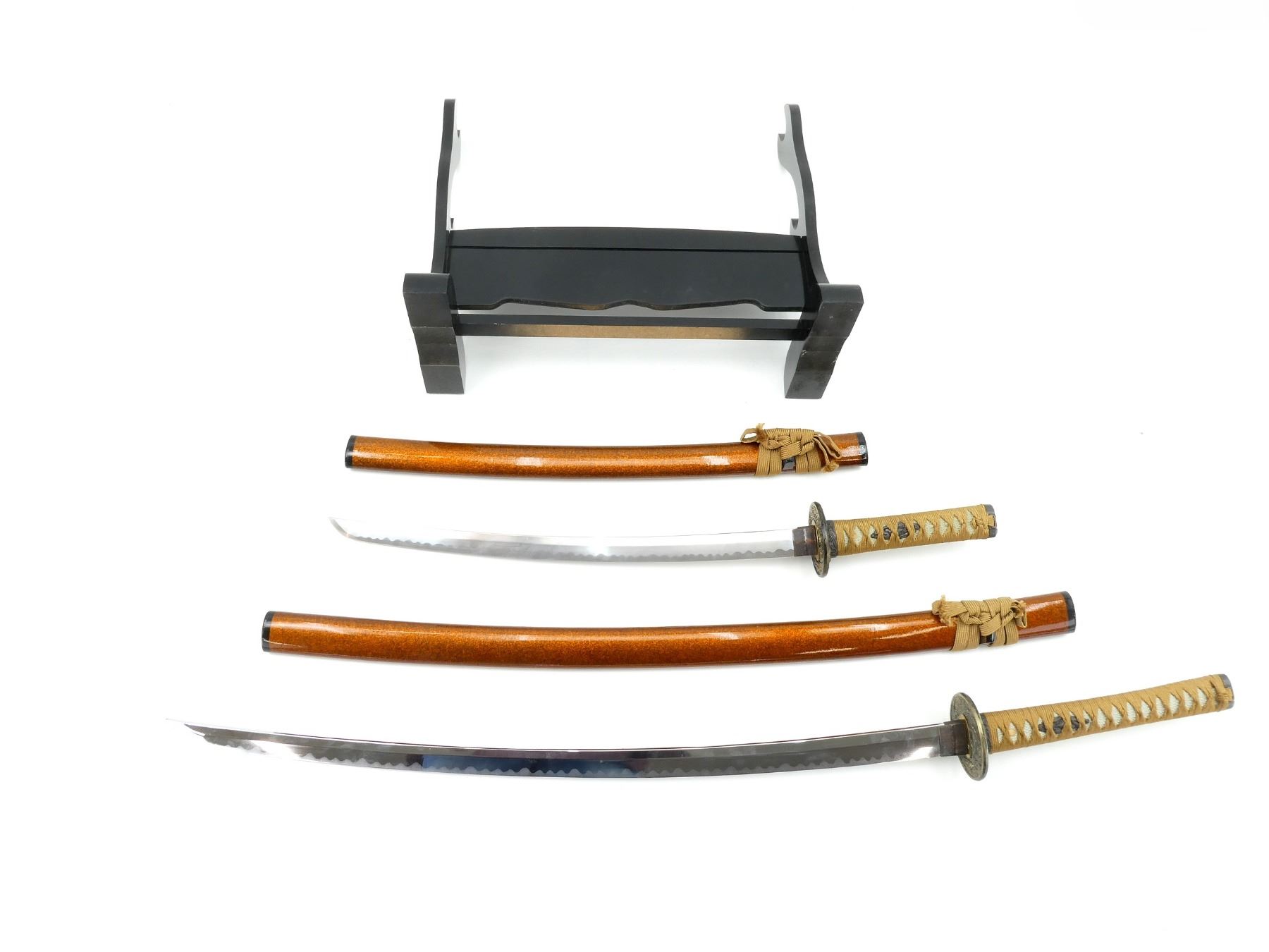 SAMURAI SWORDS WITH WOODEN STAND LOT