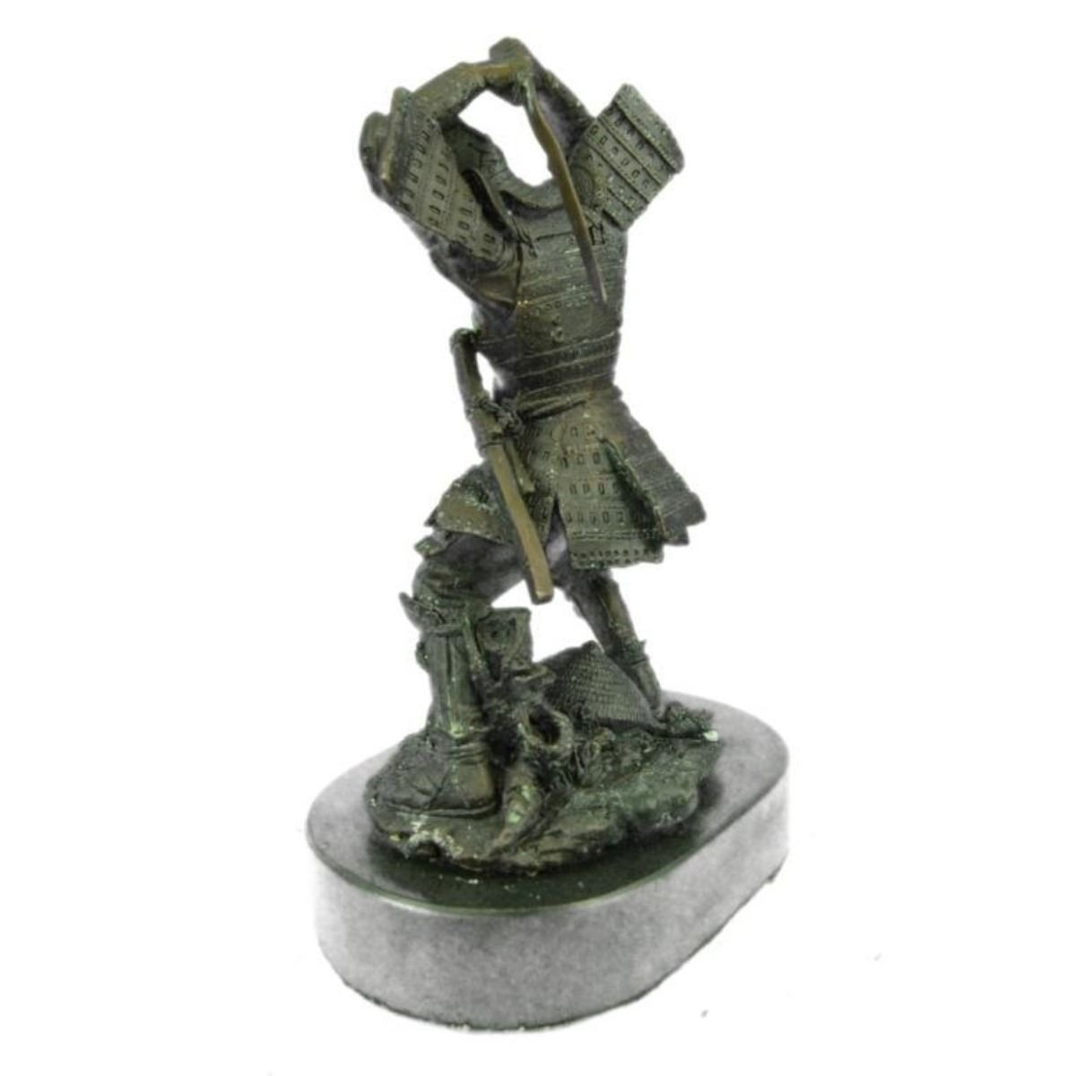 Highly detailed & rare signed bronze sculpture of a samurai warrior holding his katana sword. Lost wax casting method bronze, with brown patina, mounted on black marble base. Signed Kamicko 10" H X 6" W. 8lbs.