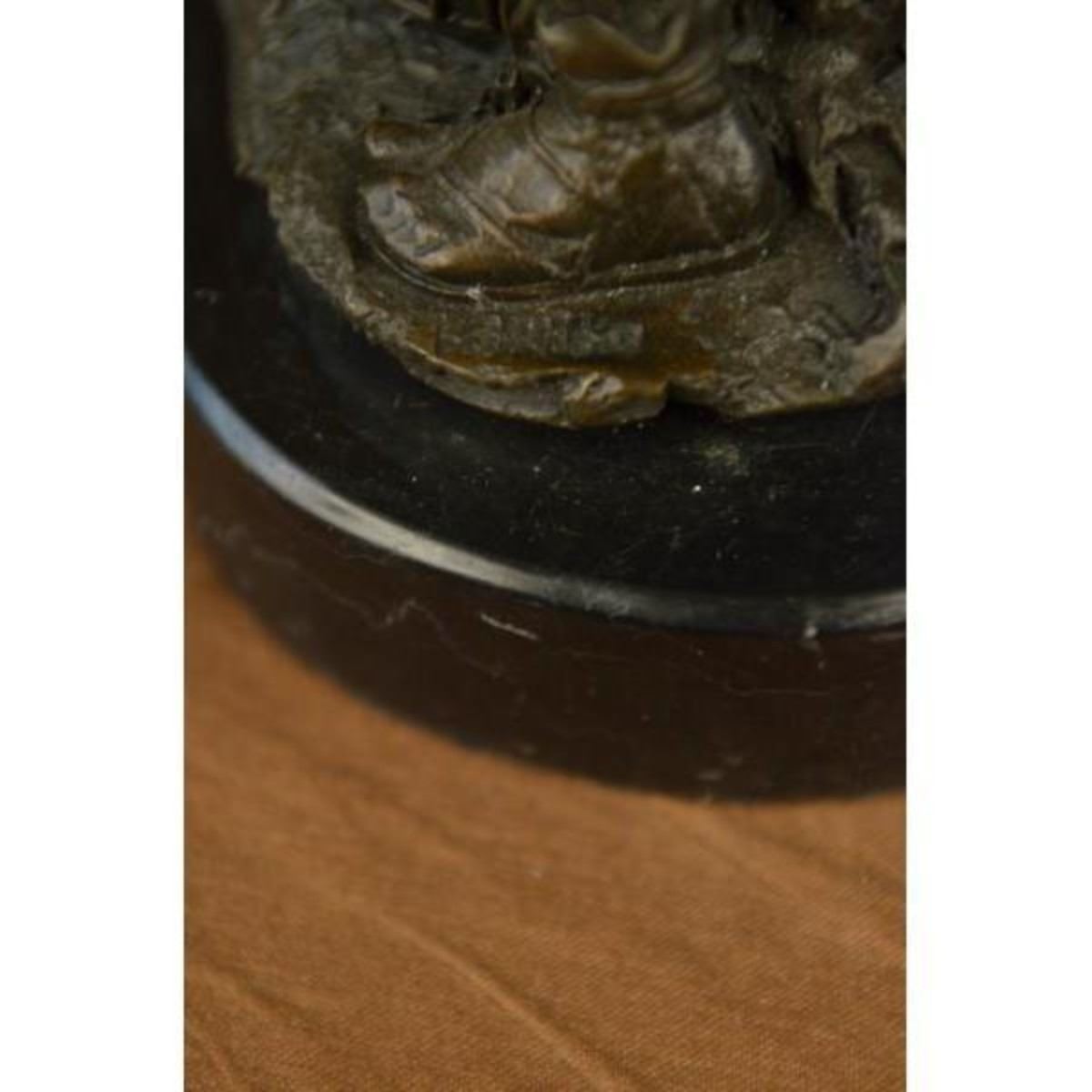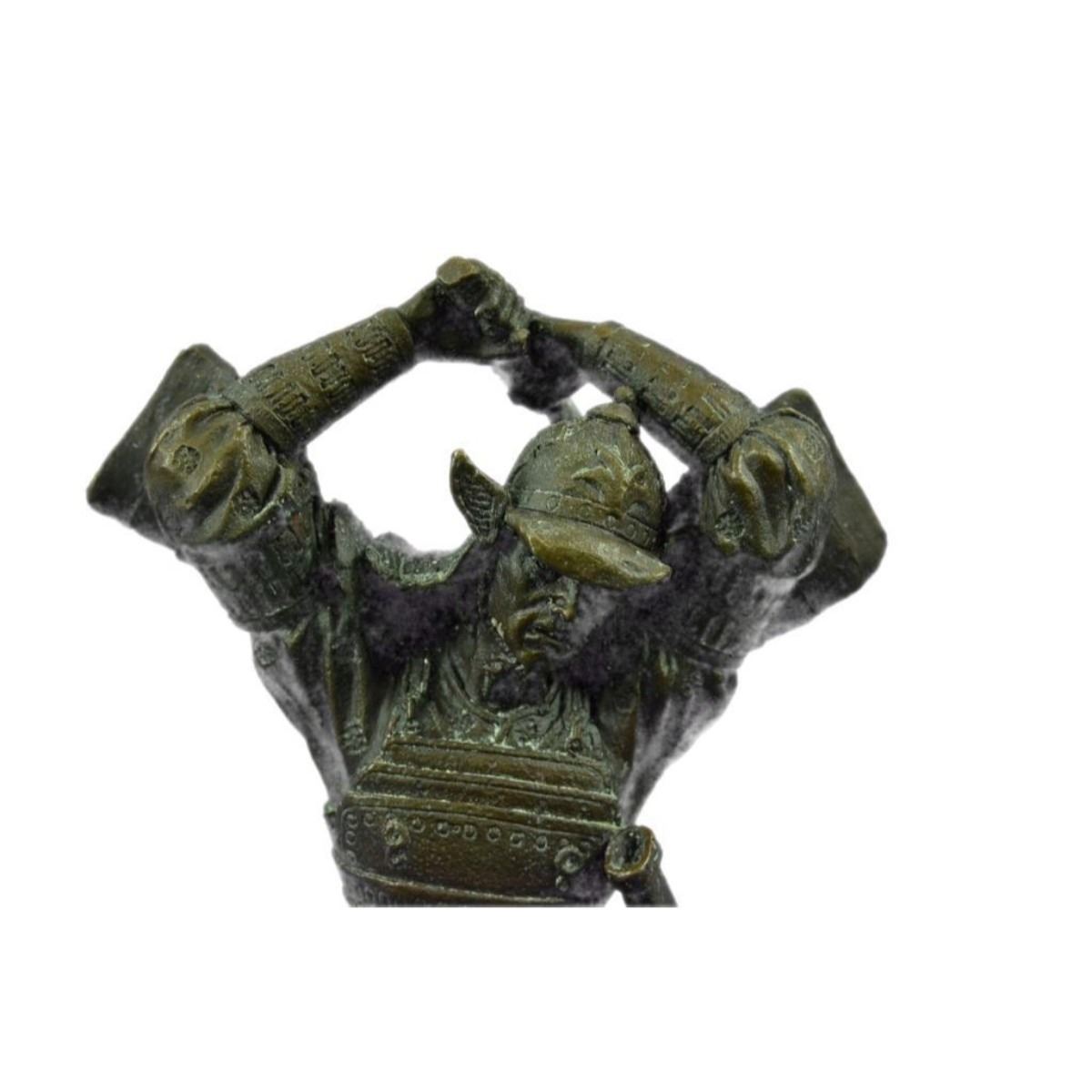 Highly detailed & rare signed bronze sculpture of a samurai warrior holding his katana sword. Lost wax casting method bronze, with brown patina, mounted on black marble base. Signed Kamicko 10" H X 6" W. 8lbs.